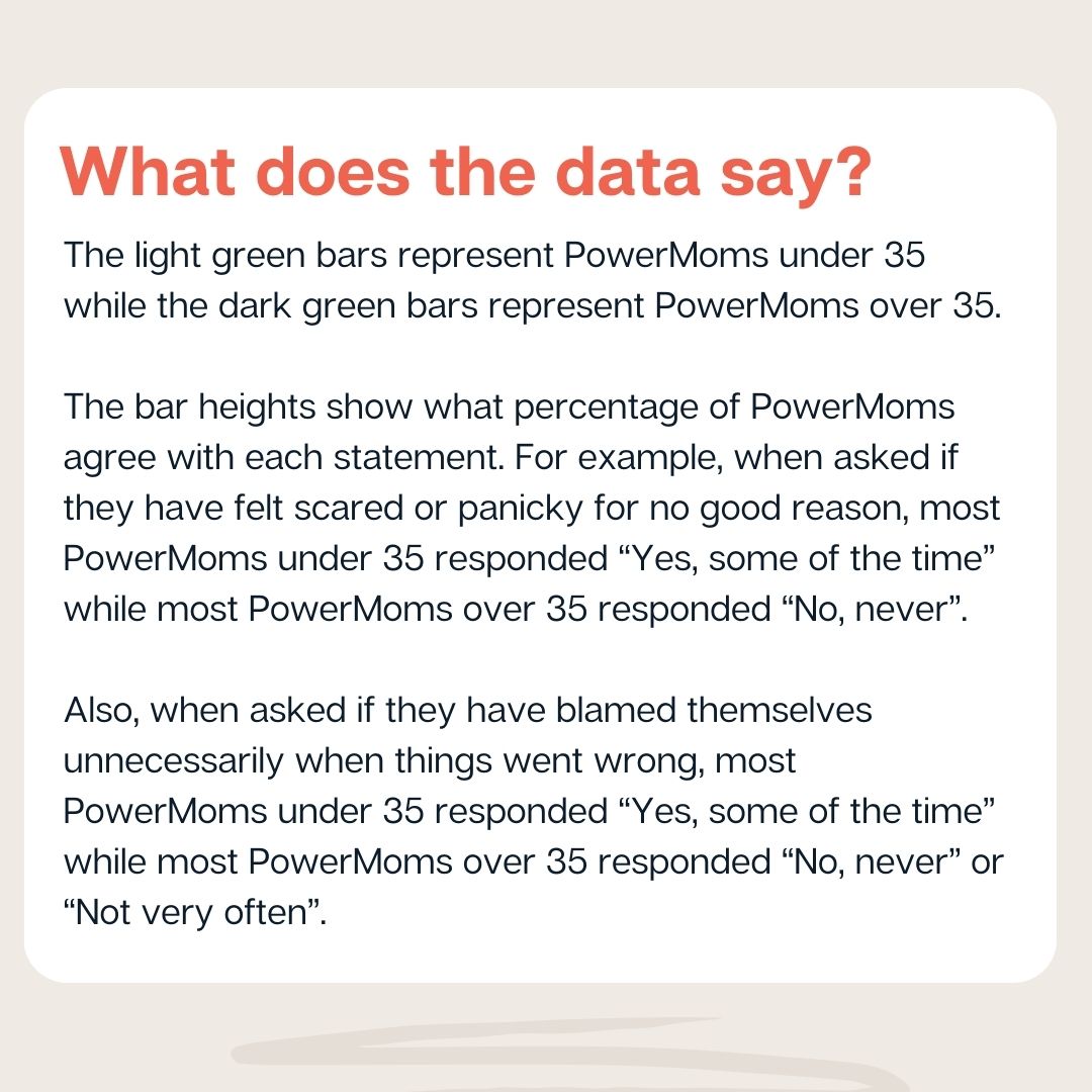 30-50% of PowerMoms in the postpartum period reported blaming themselves unnecessarily when things went wrong, or feeling anxious or worried for no good reason.